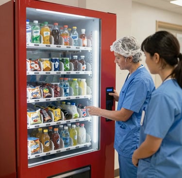 A well-stocked vending machine can serve as a significant convenience in the workplace.